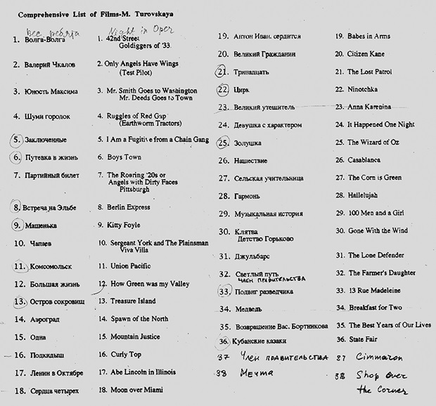Когда мы начали наш проект, у Майи уже был список из 38 пар, который она составила за год своего пребывания в институте Кеннана. Все фильмы относились к 1930–1940‐м годам.