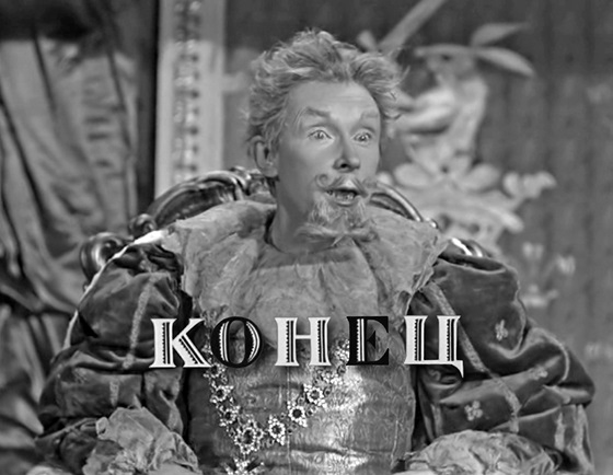 В этот момент жизнь врывается в пространство сказки, и на экране, опровергая короля и вполне в стиле Евгения Шварца, появляется слово «КОНЕЦ». Можно предположить, что для советского зрителя 1947 года это слово было вдвойне печальным: кончался замечательный фильм, и надо было возвращаться в трудную послевоенную жизнь.