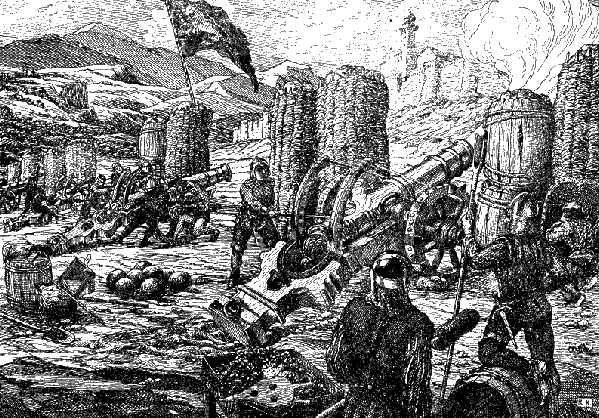 Это служило сигналом и для осажденных: они тоже прятались за каменные зубцы стены, и ядро не причиняло им большого вреда.