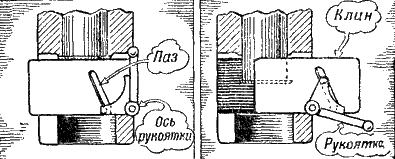 Рис. 33. Поворот рукоятки заставляет клин переместиться и открыть ствол