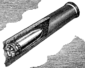 Рис. 39. В старых орудиях часть газов прорывалась вперед, обгоняла ядро в стволе