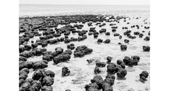 Странное это было море – все побережье покрыто осклизлыми каменными столбами с нашлепками бактериальных матов. Да и берегов нормальных тогда не существовало – были безбрежные отмели, которые, не успев обнажиться и просохнуть после отлива, тут же заливались приливными водами. Сутки на планете были еще короткие, и отливы сменялись приливами каждые несколько часов. Такой ныне «вымерший» ландшафт получил название «ни суша, ни море» – это был сущий рай для содружеств микроорганизмов. Похожий островок такого ландшафта сохранился у берегов Австралии (Рис. 6).