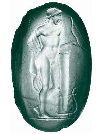 Хризолит из древнеримского кольца с изображением Аполлона. Ок. I в. до н. э. – II в. н. э.