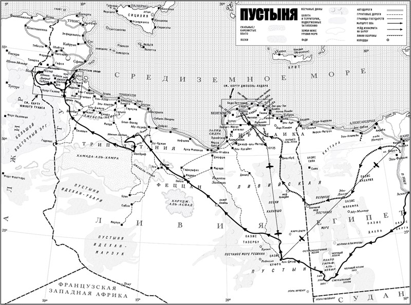 У меня тогда был двухместный «форд», который я переоборудовал в пикап на шинах низкого давления – упомянутый в предисловии «горшок». Впоследствии он безвременно погиб в городе Мерса-Матрух на второй год войны, проехав больше 222 тысяч километров.