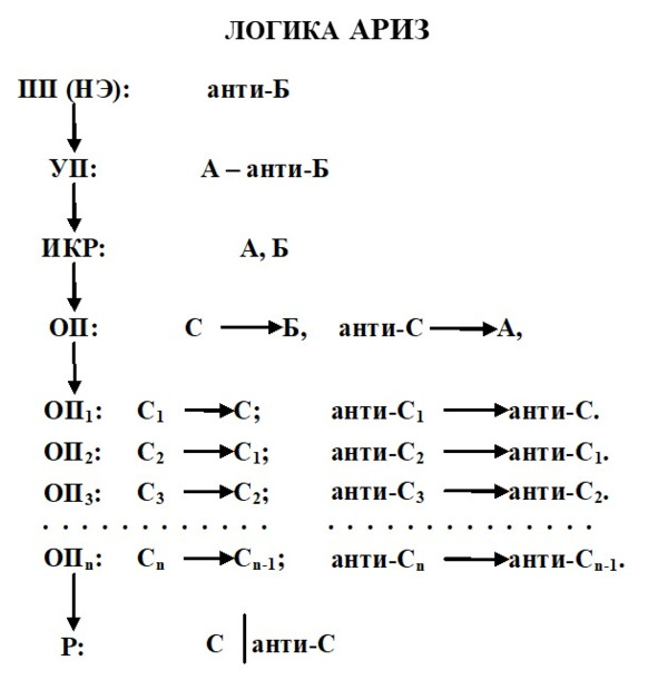 В 1976 г. автор разработал логику АРИЗ2 (см. ниже). Она изучалась после указанной цепочки. Слушатели решали задачи, используя логику АРИЗ. Освоив эти материалы, они переходили к освоению полной модификации АРИЗ (в то время АРИЗ-77). Таким образом, слушатели стали понимать смысл и логику выполняемых шагов.