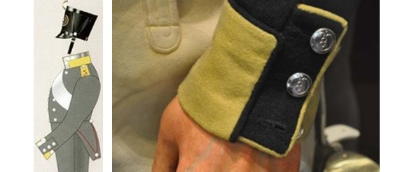 Указ Петра Первого, предписывал пришивать оловянные пуговицы к обшлагам рукавов солдатских мундиров с внешней стороны (рис. 1.3).