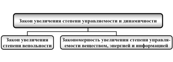 Закон увеличения степени управляемости и динамичности имеет подзакон – закон изменения степени вепольности и закономерность изменения управляемости веществом, энергией и информацией (рис. 1.2).