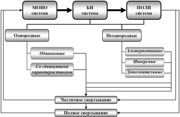 Рис. 1.15. Общая схема закона увеличения степени вепольности