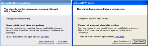 Компания Microsoft пошла еще дальше: в программе Windows XP и более продвинутых программах при появлении ошибки, специальная программа «Error Reporting» (рис. 13.4) сама сообщает компании о виде ошибки.