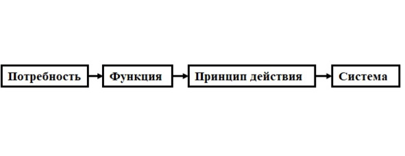 Анализ ТС осуществляется в обратной последовательности: анализ существующей системы, ее составных частей и процессов, анализ принципа действия системы, выявление функций системы и потребности, которую удовлетворяет данная система (рис. 1.2).