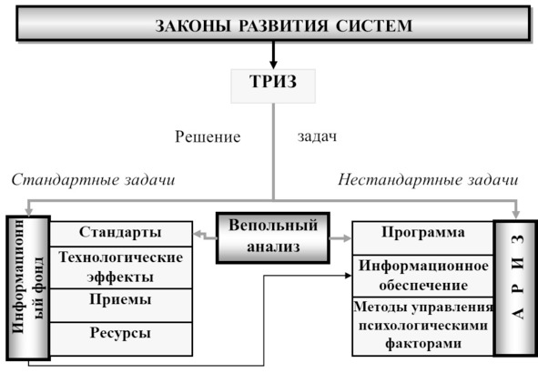 Стандартные (известные) типы изобретательских задач решаются с использованием информационного фонда, а нестандартные (неизвестные) – применением АРИЗ. По мере накопления опыта решения класс известных типов задач пополняется и структурируется.