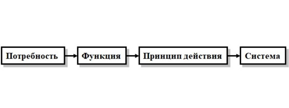 Первоначально выявляют потребность, которую необходимо удовлетворить. На следующем этапе определяют все альтернативные функции, которые могут удовлетворить данную потребность. Далее выбирают одну из них, наилучшим образом, удовлетворяющим данную потребность.