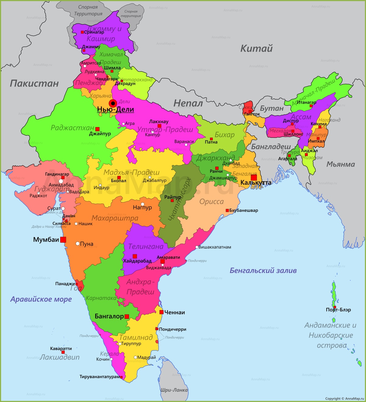Федеративное государство, парламентская республика. Премьер-министр – Нарендра Моди, президент – Рам Натх Ковинд. Подразделяется на 29 штатов и 7 союзных территорий.