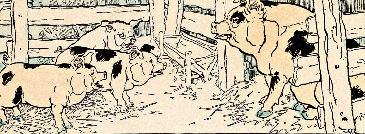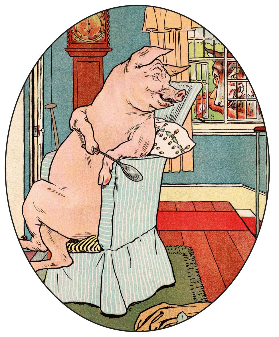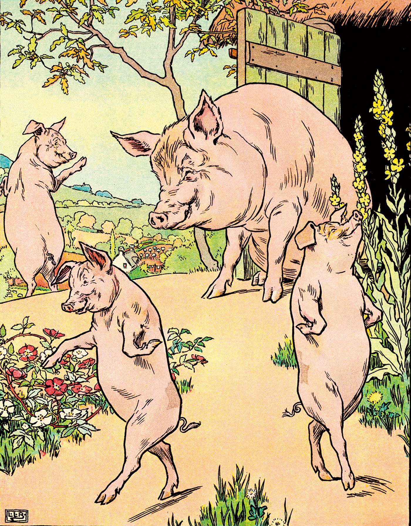 Но сэр Свинсон после этого обеда в свинарник не вернулся, и миссис Свинсон пришлось одной растить своих деток – трех маленьких поросят.