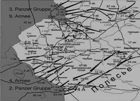 С учётом того, что во Франции немецкие войска продвигались приблизительно со скоростью 10 км/сутки, я составил подобный график для действий Вермахта против РККА.