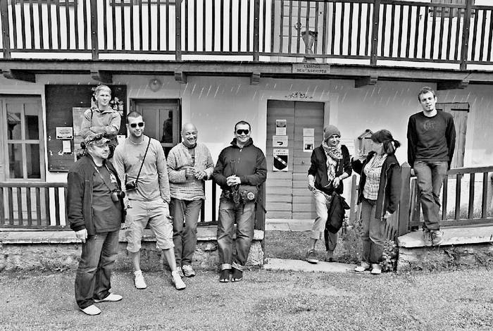 Наша группа: Переславцев, Кононыхин, Ургант, я, Однопозов, Толстиков, Жанин Маркудзи (наш гид), Робен Димэ (наш не слишком удавшийся «французский голос»)