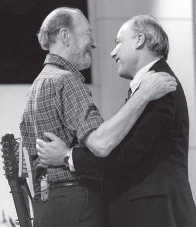С Питом Сигером, которого пригласил в свою передачу Фил Донахью, когда он презентовал мою книжку. 1990 г.