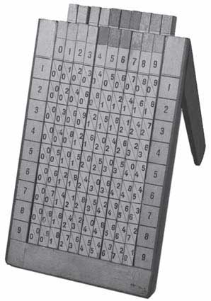 Но вернемся к истории. Человеческая мысль просто по определению не могла стоять на месте, и шотландец Джон Непер (между прочим, потомок старинного рода) сначала придумал логарифмические таблицы, а потом (в 1617 году) создал механическое устройство, с помощью которого успешно перемножал числа прямо на глазах удивленной публики. Устройство сие получило меткое название палочки Непера (рис. 1.3).