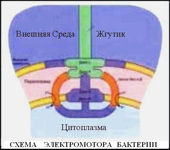 * Позднее, под конец 20 века, в 1989 году, некоторые учёные Теры, такие как В. П. Скулачёв и другие, выступали с интересными результатами своих исследований. Вот некоторые факты и выводы учёных: движение бактерий, есть результат вращения жгутика посредством миниатюрного электродвигателя, сделанного из нескольких молекул белка. Эти молекулы образуют базальное тело с подвижно закреплённым жгутиком-движителем. Ротор мотора приводится в движение потоком ионов H+ или Na+ из окружающей среды, снаружи внутрь бактериальной клетки. Напряжённость электрического поля в двигателе, как, оказалось, достигает 200 кВ на см. В своих работах учёные демонстрировали микрофотографии и схематичные чертежи наномоторов различных бактерий (цветная схема из Соресовского журнала).