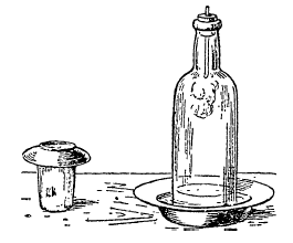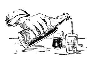 Обстановка «магического кабинета», где я собираюсь демонстрировать вам серию опытов, подтверждающих перечисленные выше свойства «трех китов» химии, весьма несложна. Стол, пара совершенно одинаковых бутылок из бесцветного стекла, полдюжины тонкостенных стаканов – вот и все, что пока мне понадобится. Стол может быть заменен низеньким шкафом с раскрытыми дверцами либо обыкновенным столом с табуретом.
