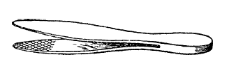 Поэтому, если, повторяя мой опыт, вы не захотите испортить его эффект, немедленно прячьте стакан с «молоком» в стол и переходите к другим фокусам. Я же открою вам секрет превращения. В стаканах, которые я держал в руках, была налита не вода, а прозрачные водные растворы: в одном – обыкновенной поваренной соли (хлористого натрия), в другом – ляписа (азотнокислого серебра). Имейте в виду, что ляпис ядовит, обращайтесь с ним с особенной осторожностью, в руки не берите, вынимайте его из баночки, в которой храните, пинцетом (рис. 6); баночка должна быть из темного стекла, так как на свету ляпис разлагается. Растворять азотнокислое серебро необходимо в дистиллированной воде, так как в обыкновенной воде оно дает муть.