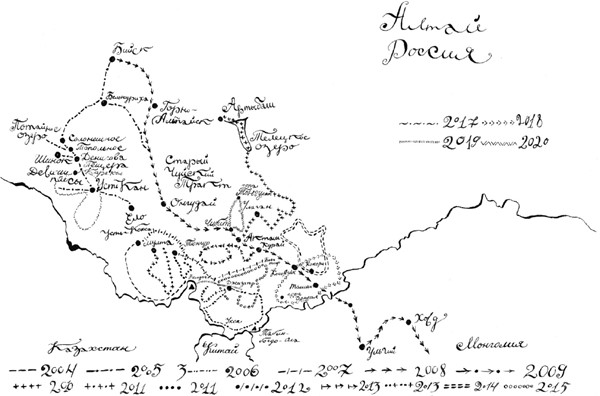 Дмитрий Сухиненко, Игорь Бочаров, Сергей, Екатерина, Дарья и Артем Алексашенко, Сергей Караганов, Алексей Бодров, Сергей Воробьев, Виктор Баранов, Михаил Шишин, Анатолий Щетитин, Александр и Евгений Лебедевы, Кирилл Серебренников, Энтони и Элизабет Гормли и др. Особенные слова признательности хочется сказать коренным жителям Алтая – нашим надежным проводникам и учителям жизни в горах Петру Суртаеву и Александру Затееву из Усть-Коксы, Николаю и Ивану Архиповым и Сергею Щенникову из Катанды, Артему Таханову из Чибита, Евгению Акчинову из Кош-Агача, Альберту Каменову, Валентину, Раимбеку, Петру, Кошену и Ишану из Джезатора, Владимиру из Каракола.