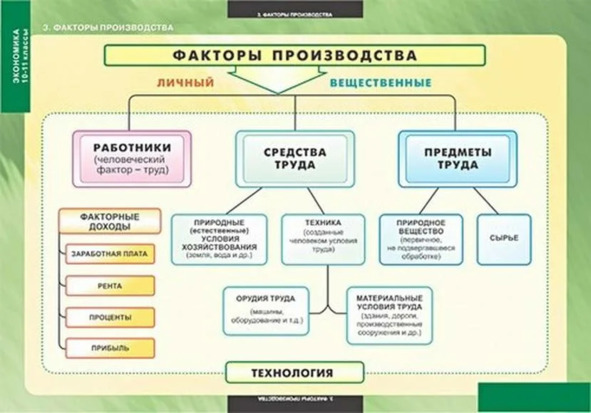 В марксистской политэкономии факторы производства структурировались несколько иным образом (рис. 15).