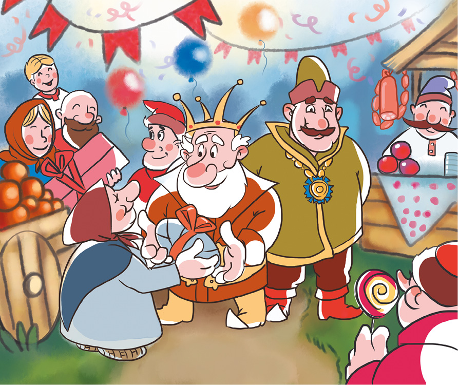 Давным-давно в одном Царстве-государстве жил Царь-батюшка. Был он лет не молодых, роста не великого, ума не большого. Ни добрый, ни злой, но государством своим правил справно. Народ в его государстве был работящий, весёлый. И все знали хорошо свое дело. Каждое утро, ещё до восхода солнца мелодичный рожок пастуха созывал коров, коз, овец в большое дружное стадо, а звонкие молоточки кузнецов будили местных петухов. Все в государстве были при деле и мужики, и бабы, и даже дети. Слава о добротных товарах местных ремесленников расходилась далеко за пределы того Царства-государства.