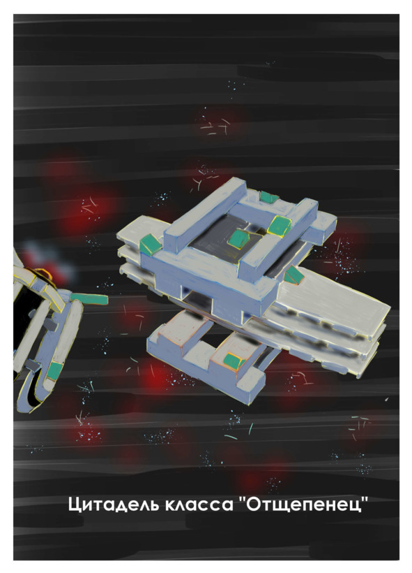 А Юнит 41—77 ВКП в это время как раз погряз в свирепой схватке за цитадель класса «Отщепенец» – функциональную станцию, предназначавшуюся для транзита крупных войсковых соединений, и не сильно пригодную для позиционных боевых действий в отличие от классов «Пролив» и «Набросок». Антитерракратская цитадель как раз летела в сторону растерзанных аннигиляторами цитаделей Вершителя, когда флоты адмиралшахов df-«Суратора», Макатора и Шови встали у нее на пути.