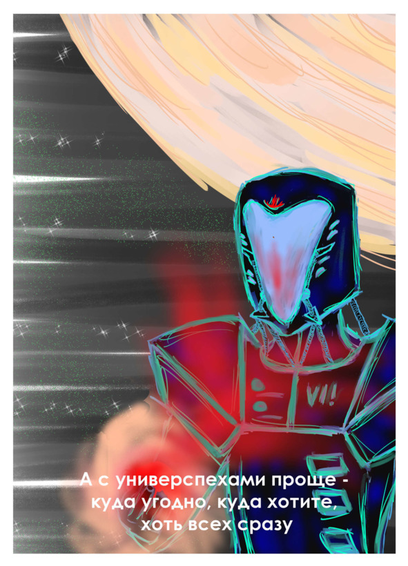 А с универспехами проще – куда угодно, куда хотите, хоть всех сразу. Даже «планетарные пространства» не были для них болезненным препятствием с порогом психологической вживаемости. Универспехи и так часто сражались в знакомых «планетоподобных измерениях». Продвинутые станции навроде статуэткоподобных «Дхармасутра IX» и «Дхармасутра XXII», да даже сооружения антитерракратов и кассумкратов напоминали типичную плотную жилую застройку. Астерпехи, может, там тоже прогуливались, нанося страдание и претерпевая страдание, но эти марши, скорее, исключение. Но именно универспехи постоянно сидели на игле маневров, пока астерпехи вгрызались и подминали под себя пространство, а метеорпехи ситуативно вкалывались как сильный антибиотик в очаги «бактериального» сопротивления.