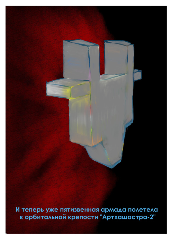 И теперь уже пятизвенная армада полетела к орбитальной крепости «Артхашастра-2», так же не поприветствовавшей громким огнем интервентов. Цителлус отчитались, что никто со станции не отлетает. Скоро запущенные метеорпехи ворвались на станцию. Ступали очень аккуратно. Их легкие скафандры были хороши для «высадки» и «выстрела», но не похода. Дроны неустанно дублировали шествие метеорпехов снаружи, готовясь ракетами разворошить лазейку для бегства метеорпехов-кротов. Без приключений и засад двенадцать метеорпехов и Гириджа добрались до командного поста. Старший лейтенант интервенционной роты отчитался на 780-RYT, что «Артхашастра-2» пуста. Джамируддин гневно отвергнул этот репост и повелел своим метеорпехам и всей «наружке» насквозь просверлить станцию.