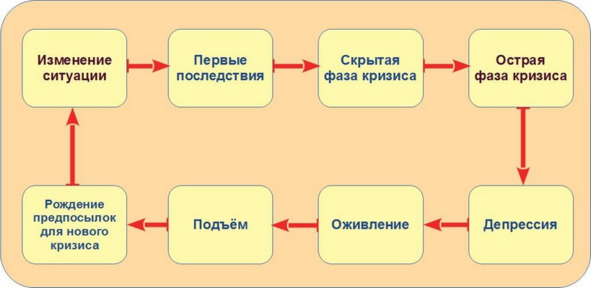 Любой кризис (хоть экономический, хоть организационный, хоть внутриличностный, хоть межличностный) – вещь циклическая и развивается по одному и тому же алгоритму:
