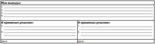 Для лучшего восприятия афоризмы расположены небольшими топиками, в каждом из которых по 10 избранных мыслей. Под каждым топиком расположена таблица, в которую можно записать свои выводы и решения. Начинать читать можно откуда угодно – хоть с середины книги, хоть с конца. Хотя лучше всё-таки начать с начала, чтобы случайно не пропустить что-нибудь интересное.
