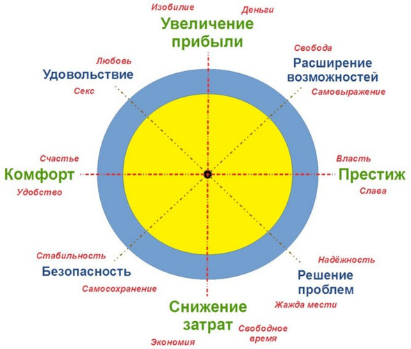 – решение проблем (в основе этой выгоды лежат такие мотивы, как надёжность и жажда мести).