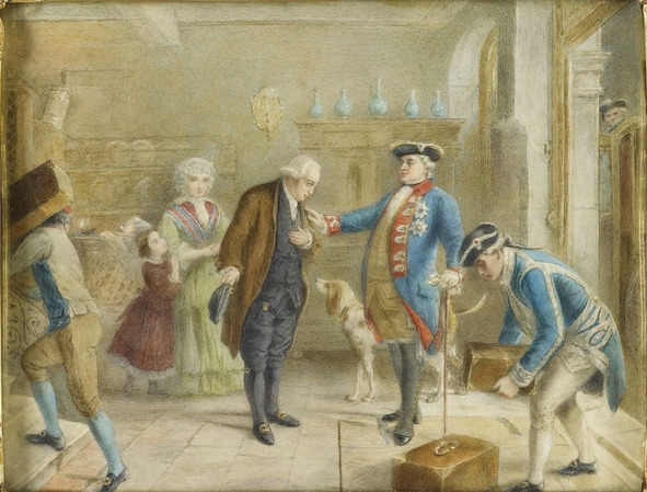 Мориц Оппенгейм. Визит курфюрста Вильгельма к Майеру Ротшильду для передачи ценностей на хранение (картина написана в период между 1820 и 1850 гг. по заказу итальянской ветви наследников Ротшильда).