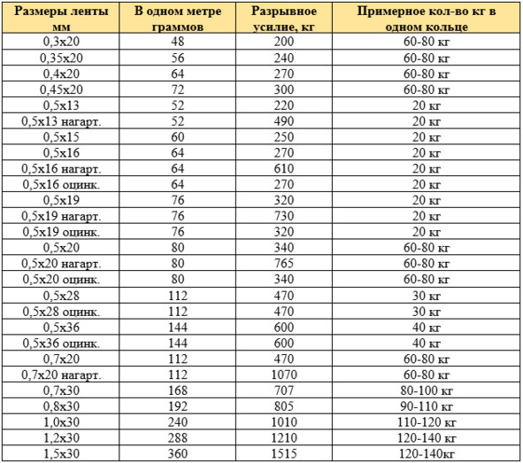 Каждый типоразмер ленты предусматривает определенную плотность, выраженную в количестве гр\метр или кг\кольцо.