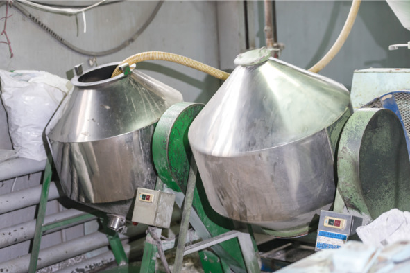 2-й этап. Загрузка полимерного сырья в бункер экструдера