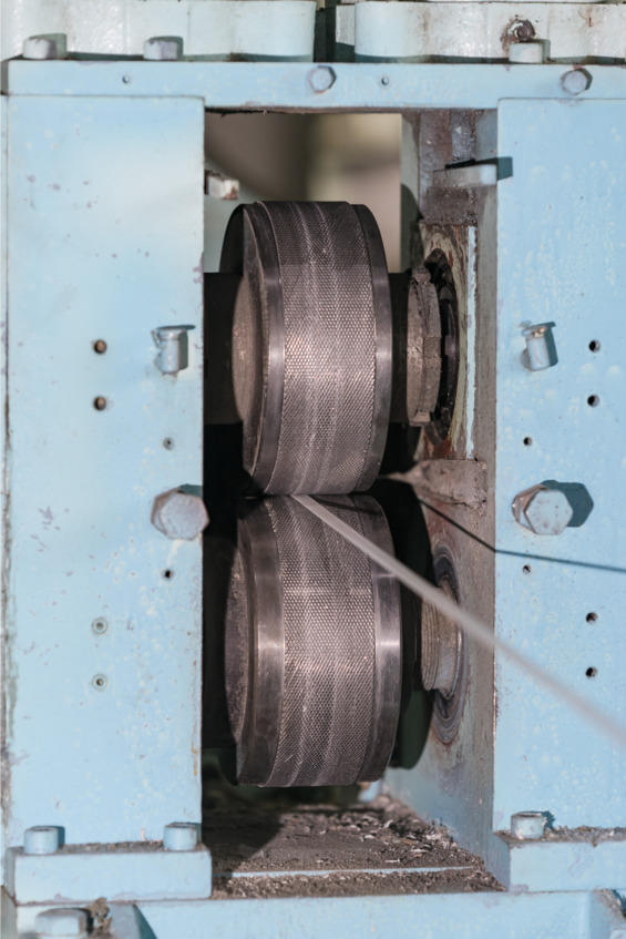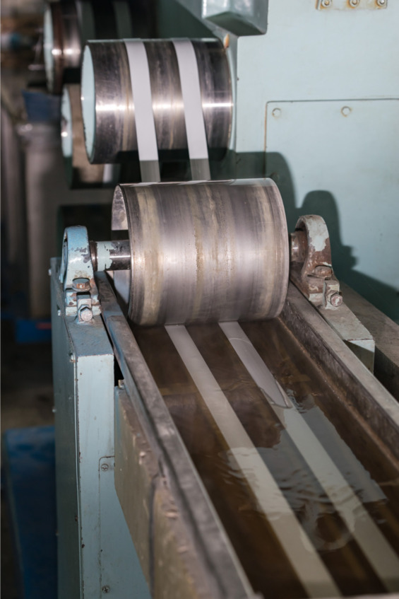 Предварительно охлажденная лента протягивается через множество валов. Их функция – растянуть ленту и начать формировать ее вид и размер.