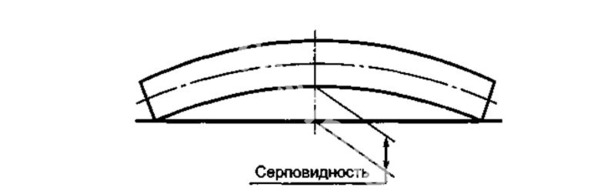 Серповидность (саблевидность) ленты – геометрический параметр и качественный показатель, который характеризует прямолинейность ленты при разматывании из бобины на автоматических стреппинг машинах. Когда автомат выстреливает ленту – она должна двигаться в точно заданном направлении, чтобы пролететь по рамке автомата и попасть в упаковочную головку. Если серповидность повышена, то лента застрянет в рамке, будут происходить сбои в работе оборудования, возникнут дополнительные отходы ленты, процесс обвязки замедлится.