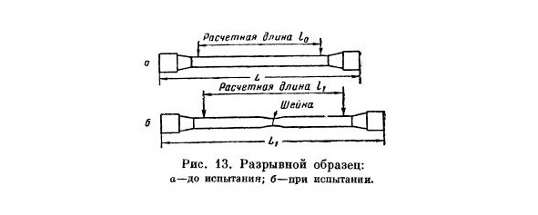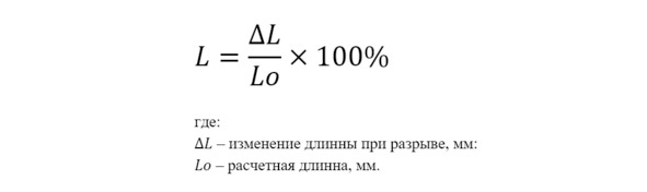 Удлинение при разрыве (L) определяют одновременно с определением разрывной нагрузки, и вычисляют по формуле в процентах: