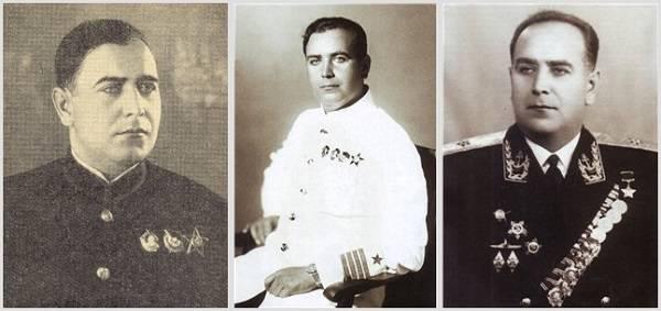Слева направо: капитан 3 ранга Николай Египко после возвращения из Испании (1938 год), капитан 2 ранга Николай Египко после присвоения звания Героя Советского Союза (1939 год), контр-адмирал Николай Египко – начальник Высшего военно-морского училища подводного плавания имени Ленинского комсомола (начало 1960-х).