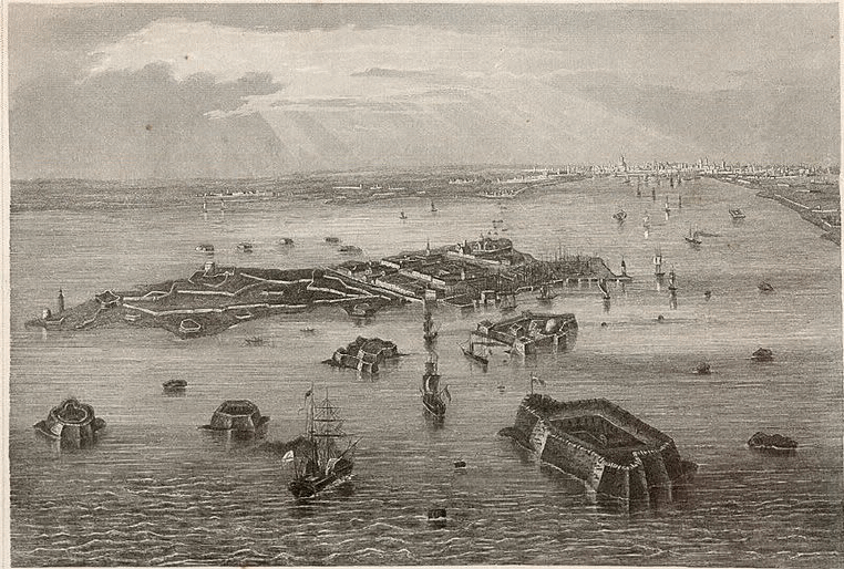 Кронштадт и Петербург в отдалении.