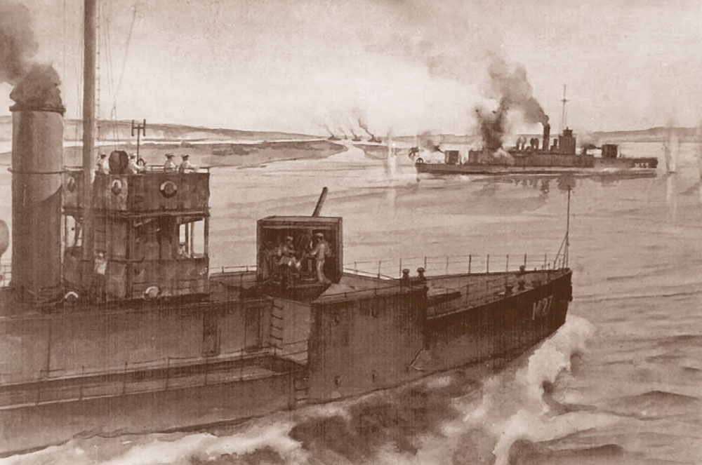 Бой кораблей Северодвинской флотилии с флотилией белогвардейцев и интервентов. 1919 г. Из архива журнала «Морской сборник». ЦГА ВМФ