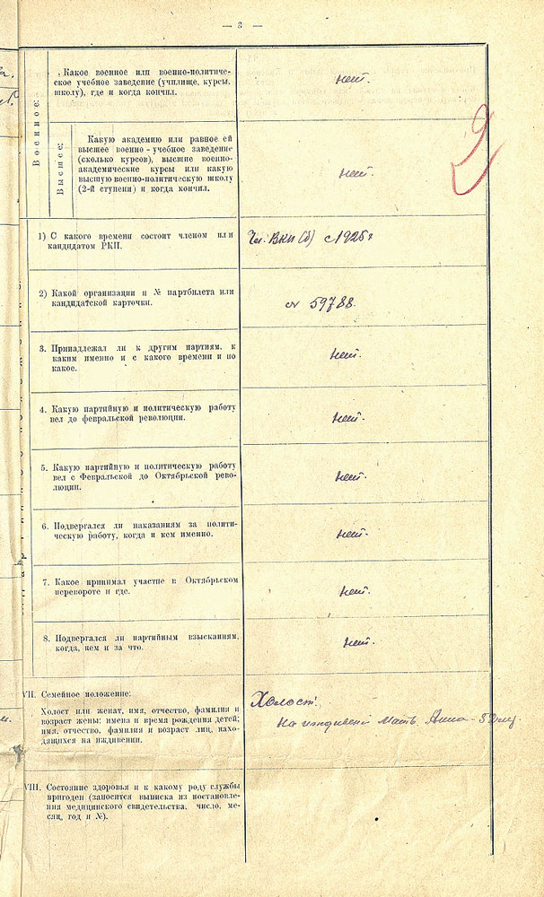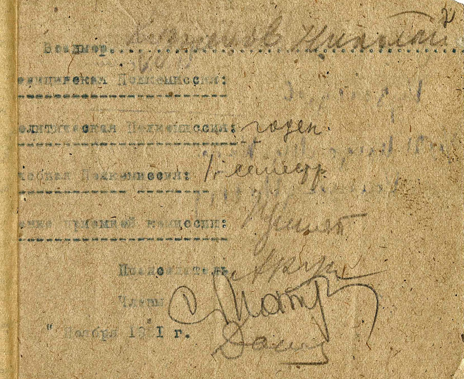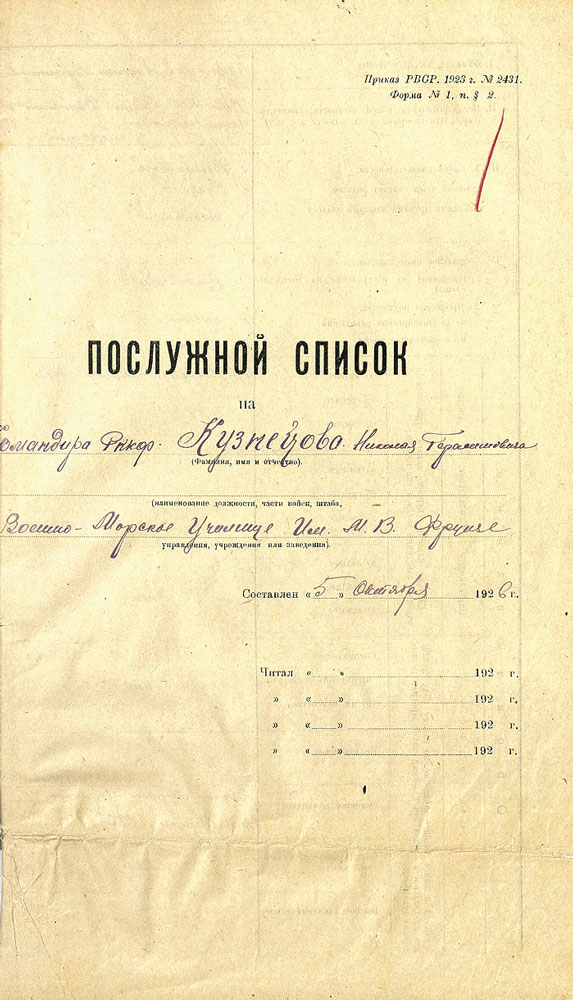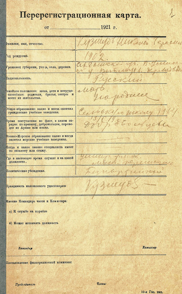 Перерегистрационная карта военмора Н.Г. Кузнецова. 1921 г. Из фондов ЦГА ВМФ. Публикуется впервые