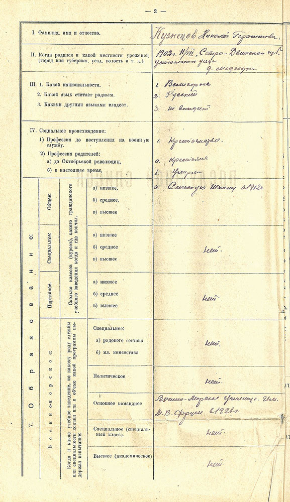 Послужной список Н.Г. Кузнецова. Из фондов ЦГА ВМФ. Публикуется впервые