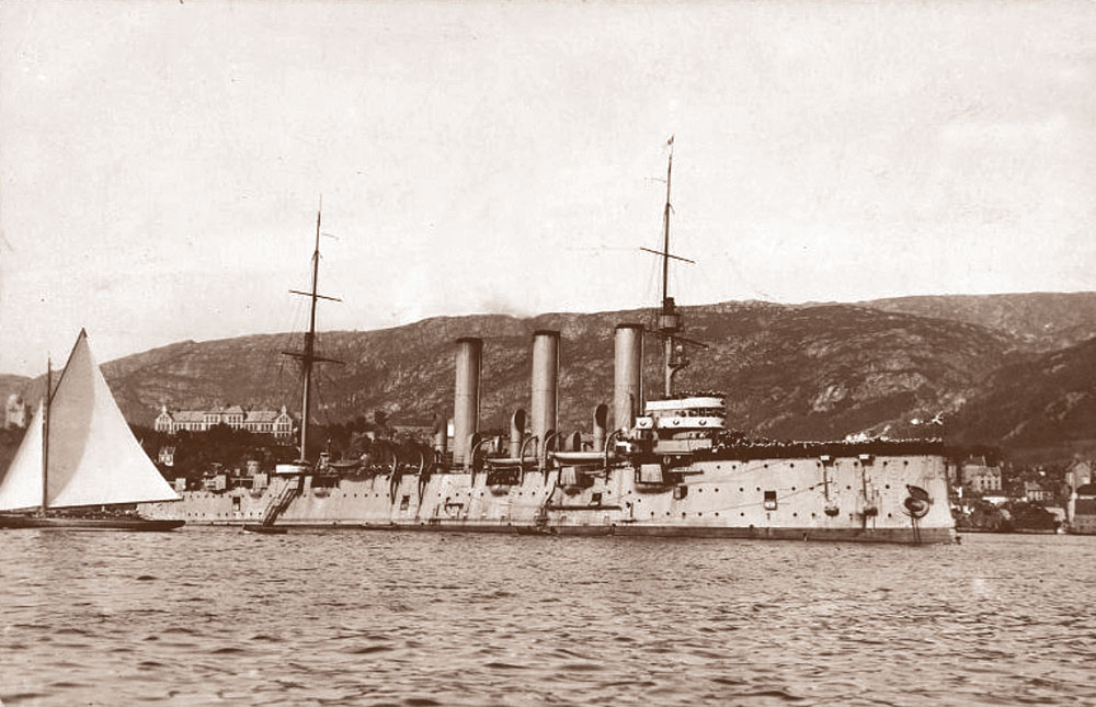 Учебный крейсер «Аврора» во время практического плавания из Кронштадта в Архангельск в 1924 г., в котором участвовал курсант Николай Кузнецов. Из архива журнала «Морской сборник»