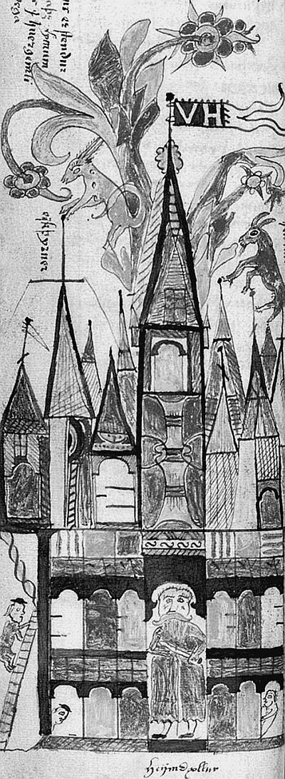 Валгалла. Рисунок из исландской рукописи. XVII в.