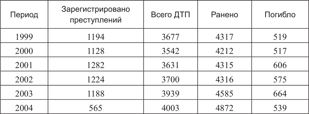 В 2008 и 2009 годах рост дорожно-транспортной преступности происходил на фоне снижения основных показателей дорожно-транспортной аварийности. Лишь в 2010 году преступлений против безопасности дорожного движения и эксплуатации транспортных средств было зарегистрировано меньше, чем за предшествующий год.
