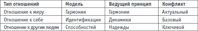Модель личности в позитивной динамической психотерапии может быть представлена в виде следующей таблицы.