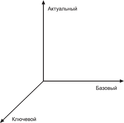 В методе позитивной динамической психотерапии для описания и анализа психотерапевтического процесса используется трехфакторная модель психодинамики, которая может быть графически отображена тремя осями соответствующими трем разновидностям личностного конфликта: 1-я ось – актуальный конфликт; 2-я ось – базовый конфликт; 3-я ось – ключевой конфликт (рис. 2).